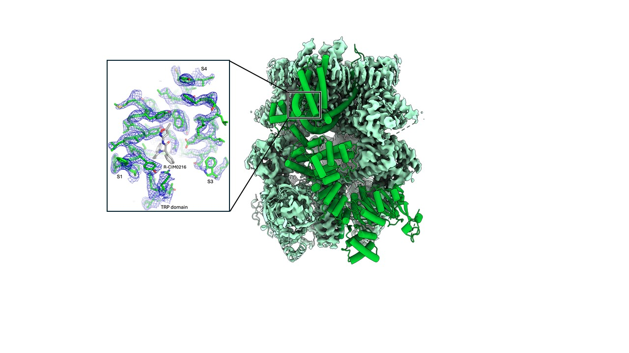 Overactivation of TRPM3 is associated with neurodevelopmental issues and epilepsy. Therefore, therapeutic strategies have been looking into inhibiting this channel, and one of the most common strategies uses isosakuranetin, a plant-derived flavonoid. They observed it has two mirror-image forms: S and R. Surprisingly, only the R form fits the pocket and blocks the channel.