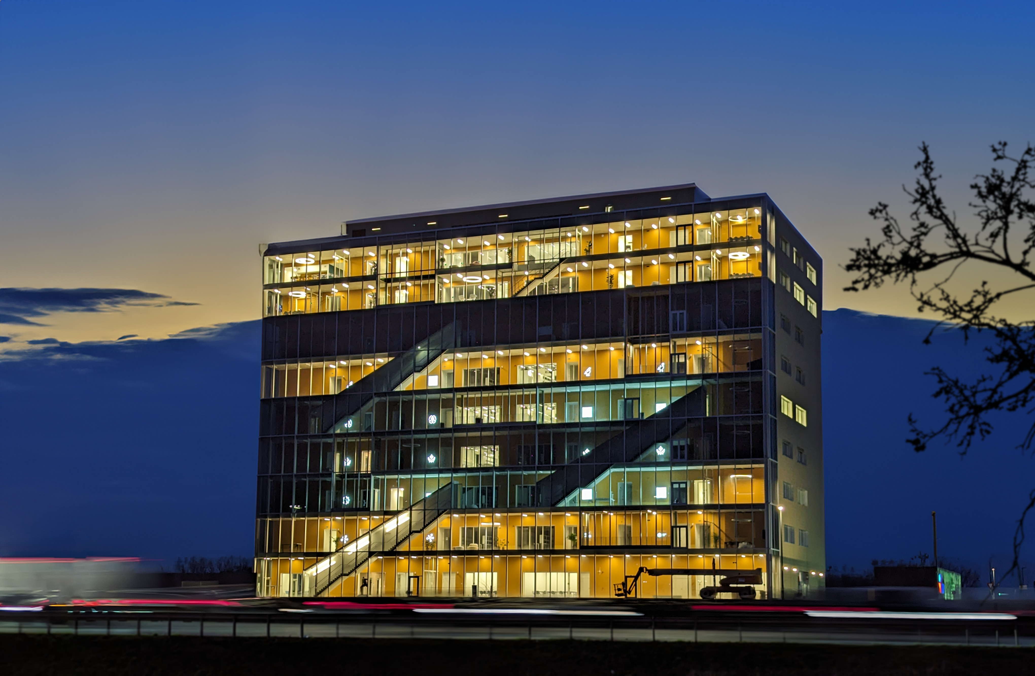 De nieuwe VIB Bio-Incubator is te vinden langs de E40 ter hoogte van Eiland Zwijnaarde. Dankzij een BREEAM-certificering en CO2-neutrale uitbating, vertegenwoordigt het gebouw een grote stap in VIB's engagement voor duurzame vooruitgang.